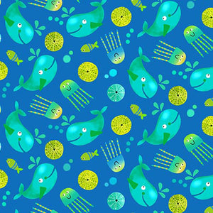 Michael Miller - Alphabits Whales BLUE.Priced per 25cm.