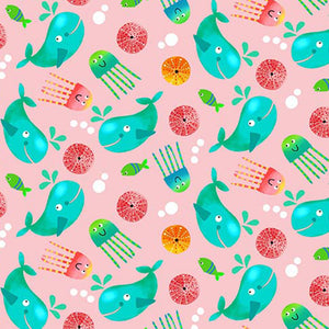 Michael Miller - Alphabits Whales PINK.Priced per 25cm.