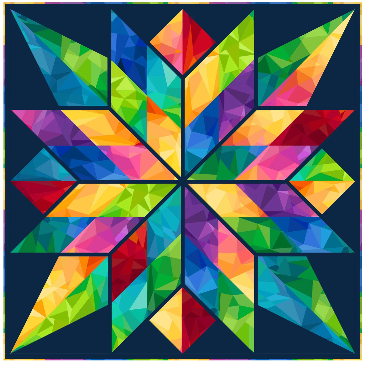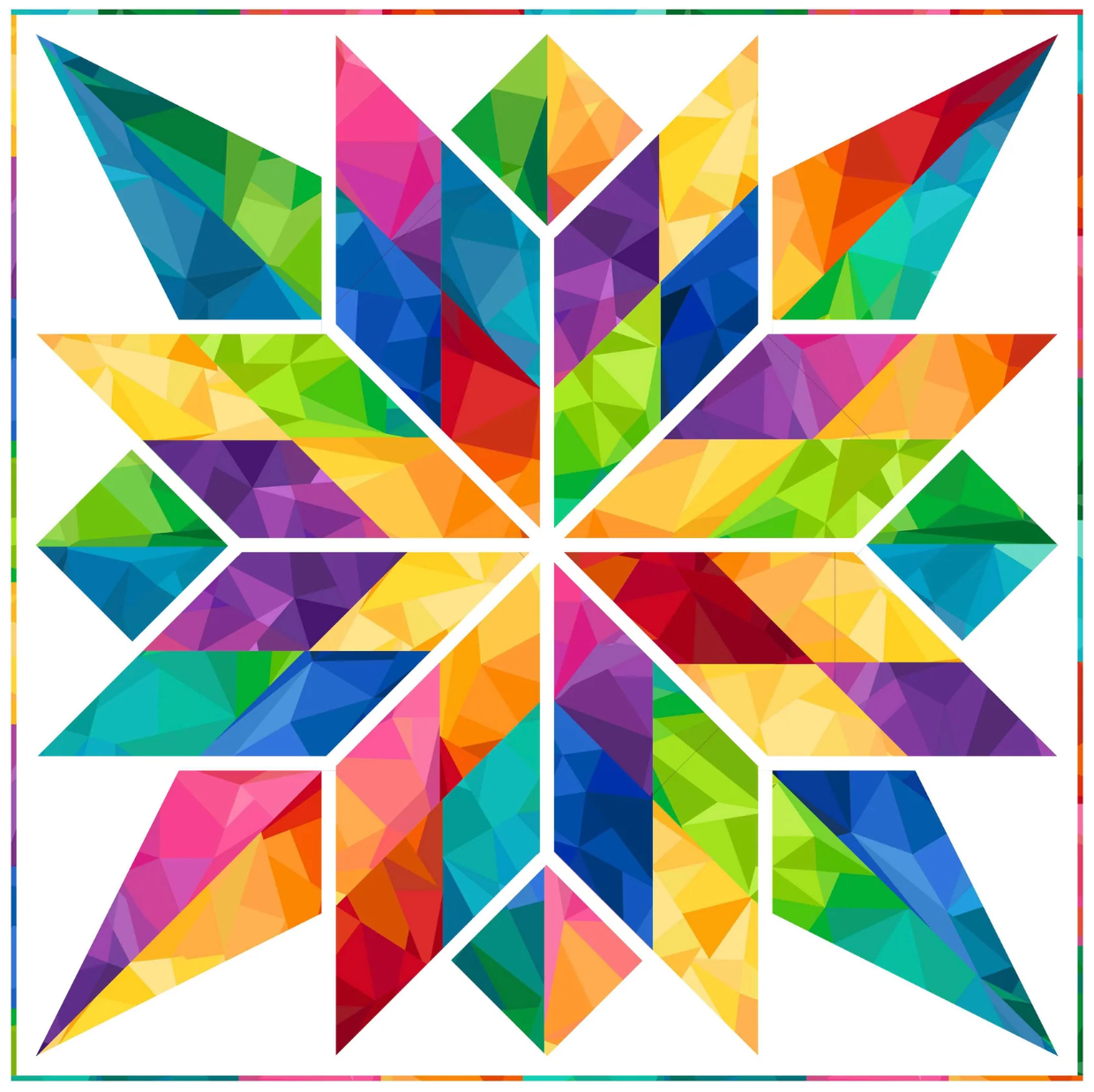 This beautiful paper-pieced block pattern is a fun pattern perfect for building a color-wheel! Pattern includes full-size foundations. Dig into your scrap bins and stash to make the Colorburst star pattern! Turn it into a mini quilt, pillow, bag or make an entire quilt of them.